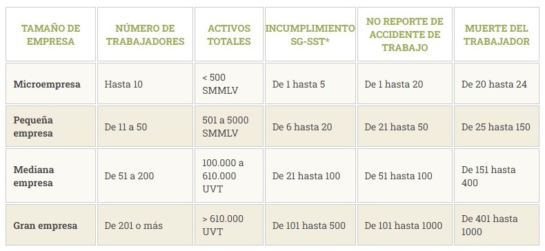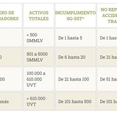 Tabla resumen de sanciones:
